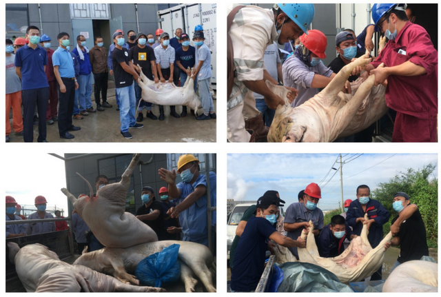 长时间停留海外、加班加点,思乡、疲倦是人之常情。在尊龙集团党委的关心下,在党委副书记、总裁陈方的具体指导下,尊龙管理团队积极行动起来,慰问外协单位一线员工。考虑到发放猪肉比较实在,又能满足中国员工对家乡味道的想念,“寻猪”一事就这样提上日程。